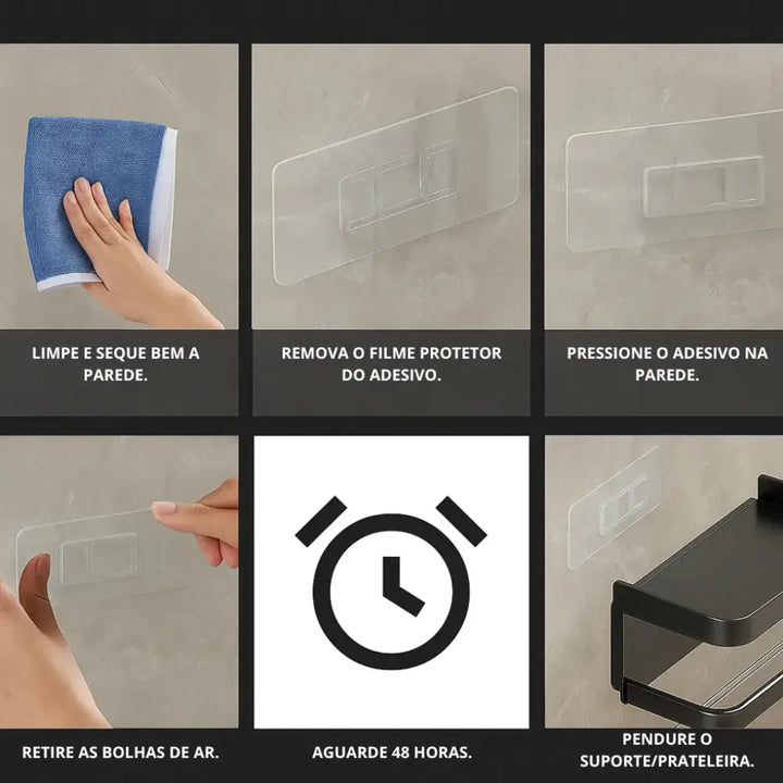 Instalação sem furos – protege suas paredes, proporcionando praticidade e facilidade de instalação.