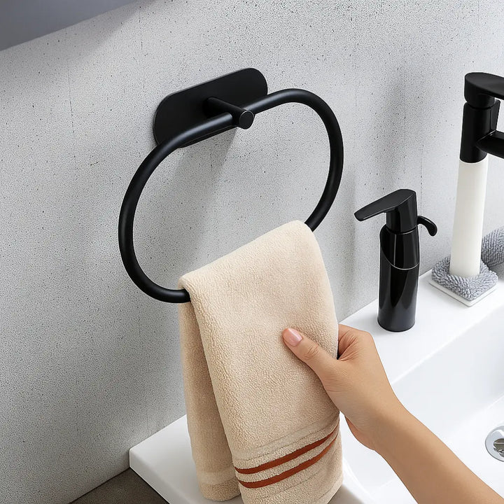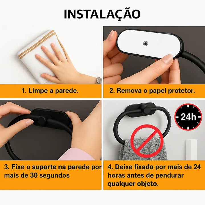 Eleve o estilo e a funcionalidade do seu banheiro com o Porta Toalha Para Banheiro Ovin Preto. Com design minimalista e acabamento preto fosco, oferece uma solução prática, elegante e sem furos para manter sua toalha sempre ao alcance.