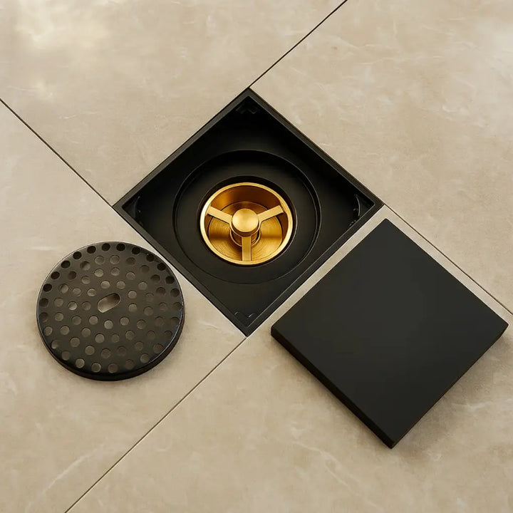 Garanta um ambiente sempre limpo e livre de odores com o Ralo Oculto Aqua Preto, projetado para instalação embutida em pisos de azulejo, mármore e concreto.