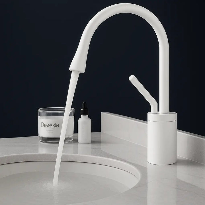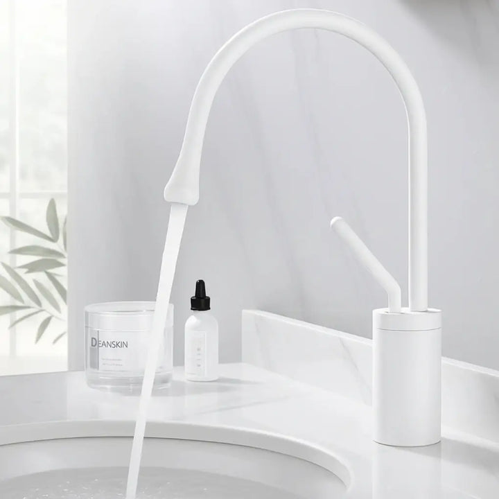 A torneira para banheiro com misturador de água quente e fria Domu Branca é ideal para quem quer modernidade, durabilidade e praticidade. Feita em latão maciço resistente à corrosão, combina design sofisticado e alta funcionalidade para pias de lavatório em banheiros planejados.