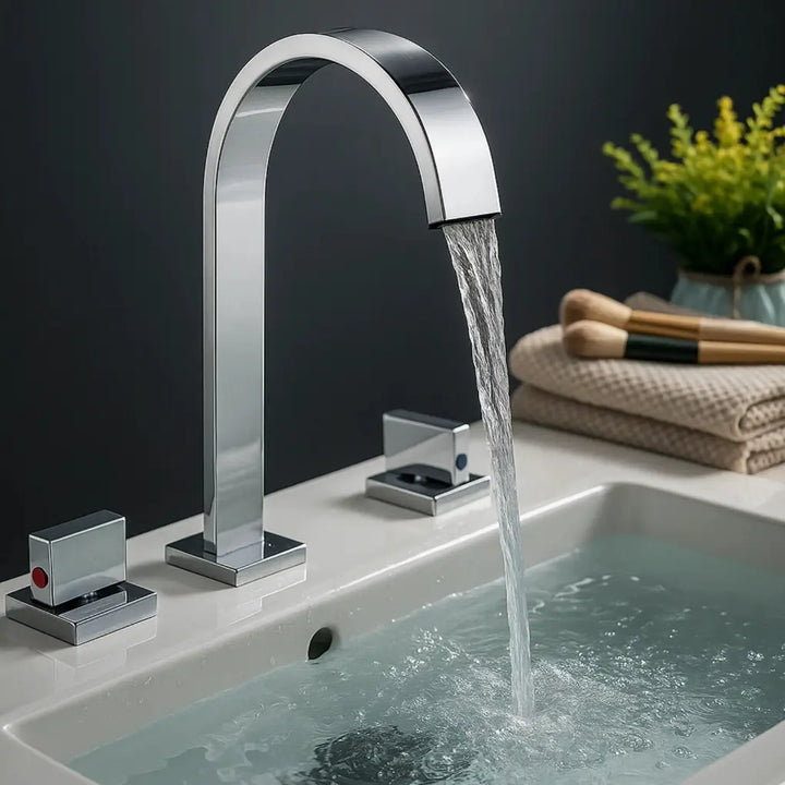 Misturadora de água quente e fria com alavanca dupla para ajuste preciso e máximo conforto.