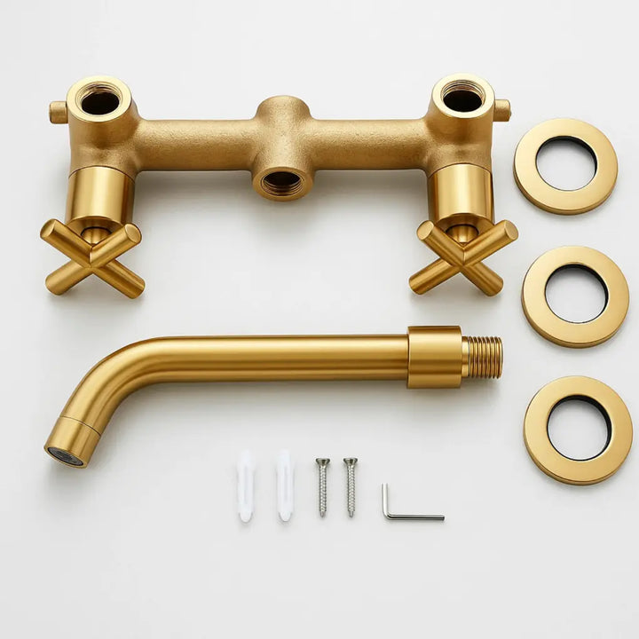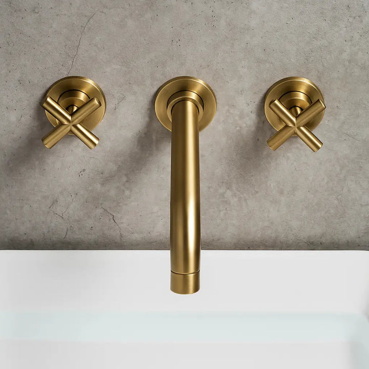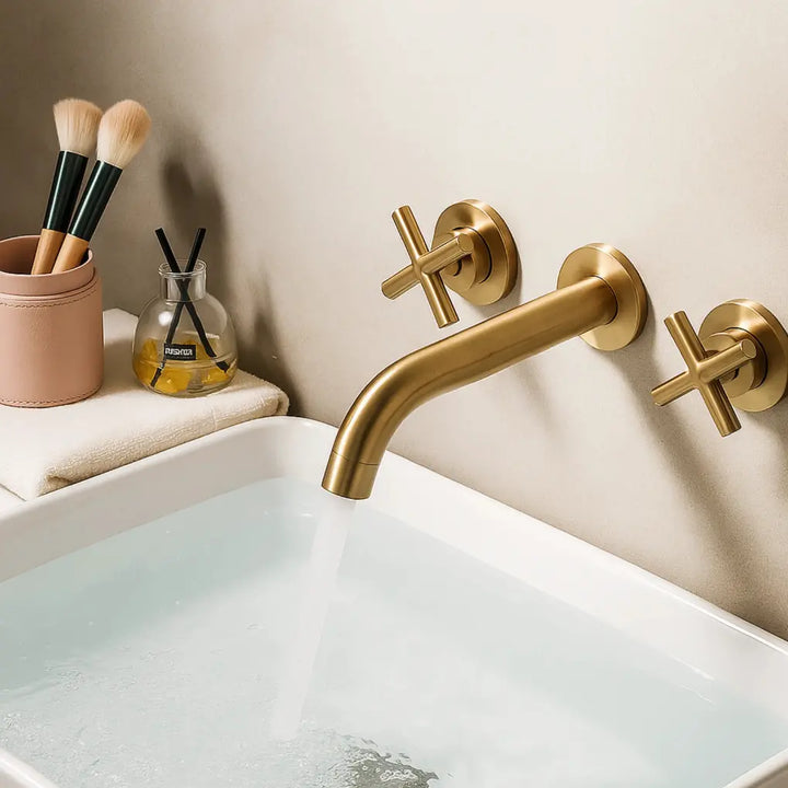Design sofisticado com acabamento dourado escovado, perfeito para banheiros modernos e elegantes.