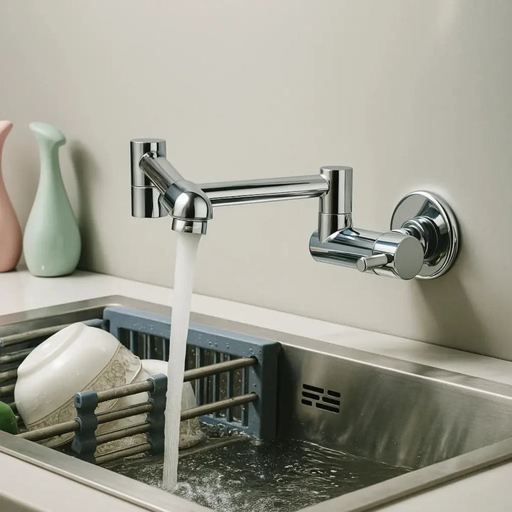 Bico articulado e retrátil, oferecendo maior flexibilidade para alcançar todos os pontos da pia com praticidade.
