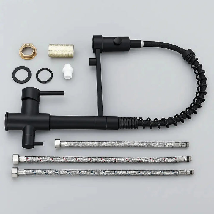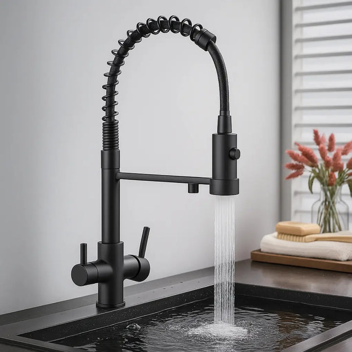 Atualize sua cozinha com a Torneira Pristine Preta, um modelo 2 em 1 com filtro integrado que oferece água quente e fria, design moderno, durabilidade e total controle de temperatura. Ideal para quem busca uma torneira de cozinha com bico retrátil, elegante e funcional.